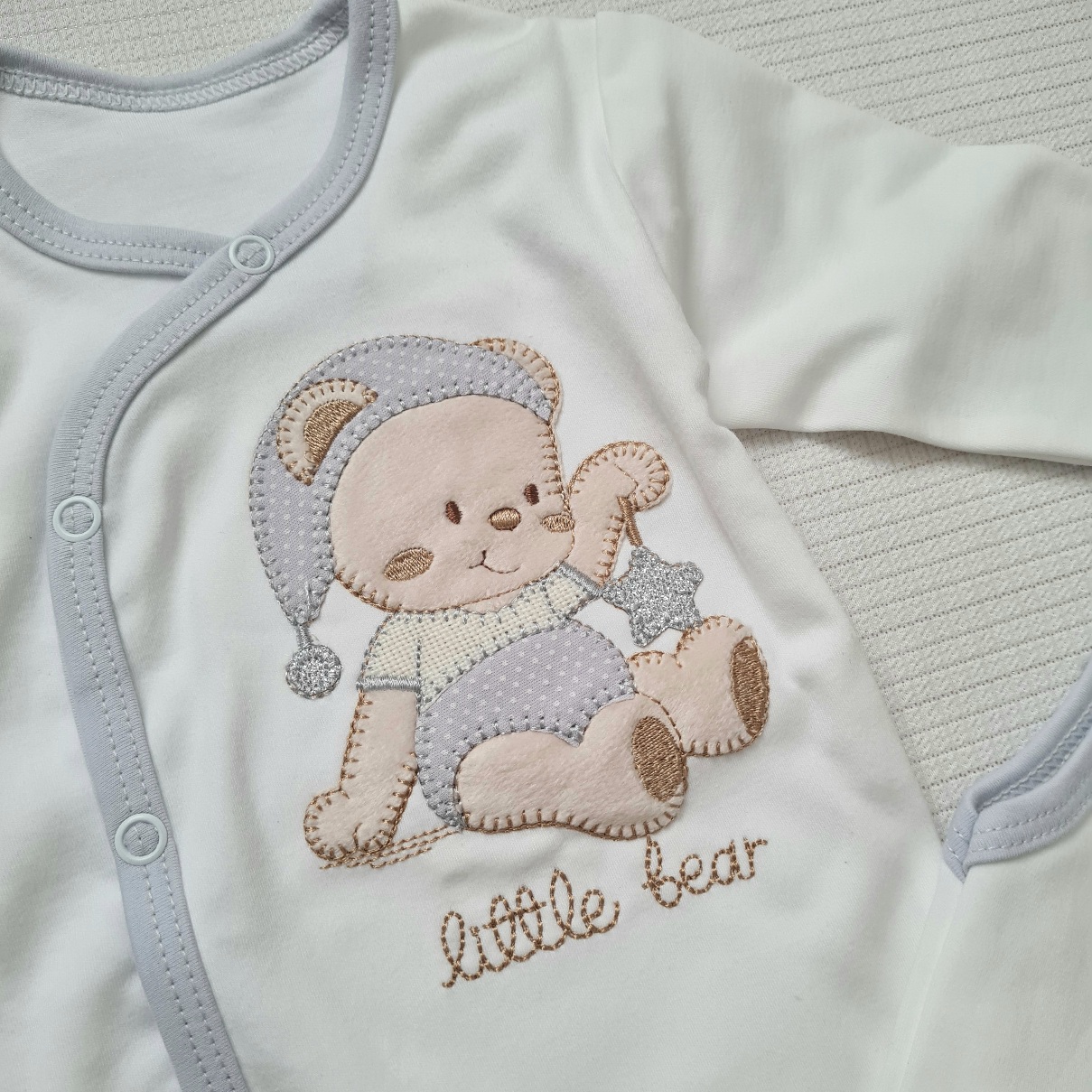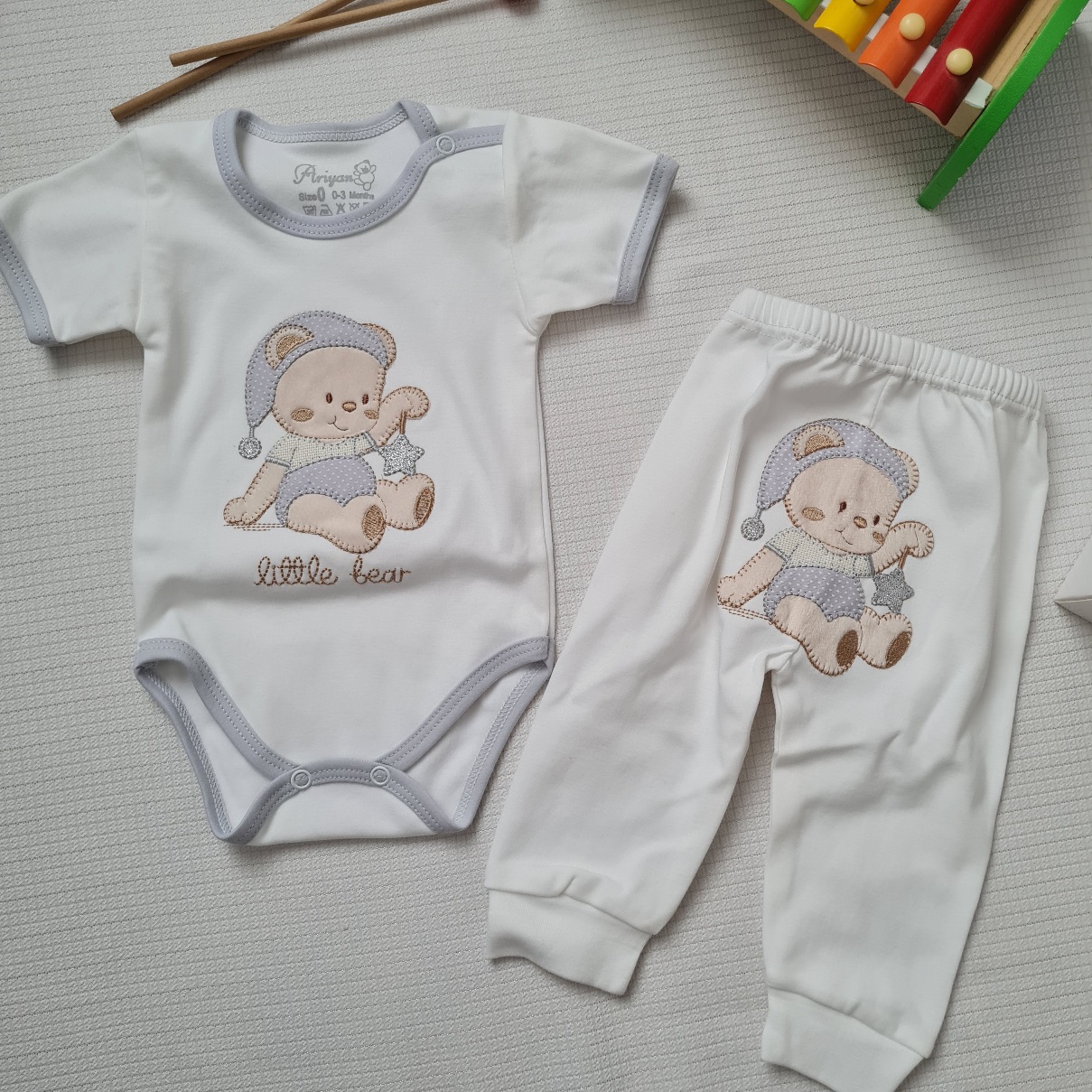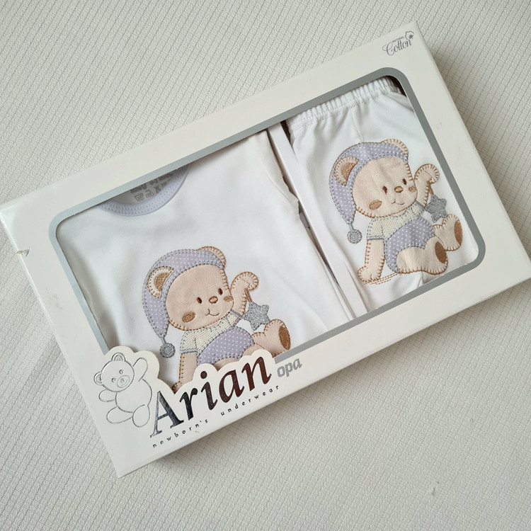 ست ۵ تکه نوزادی آرین، دارای سایزبندی استاندارد و تکه های پرکاربرد برای نوزاد دلبند شماست. این ست با جنس لطیف و پنبه ای ، طرح کودکانه و بسته بندی زیبا، یکی از پرطرفدارترین محصولاتی است که مناسب هدیه دادن و سیسمونی می باشد.